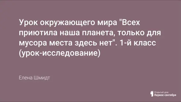 Цели урока: сформировать у детей представления об источниках и способах утилизации бытового мусора; убедить их в необходимости соблюдения чистоты в доме, городе, природном окружении; обеспечить элементарный анализ учащимися экологической проблемы.