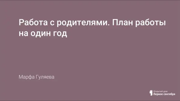 Работа с родителями. План работы на один год