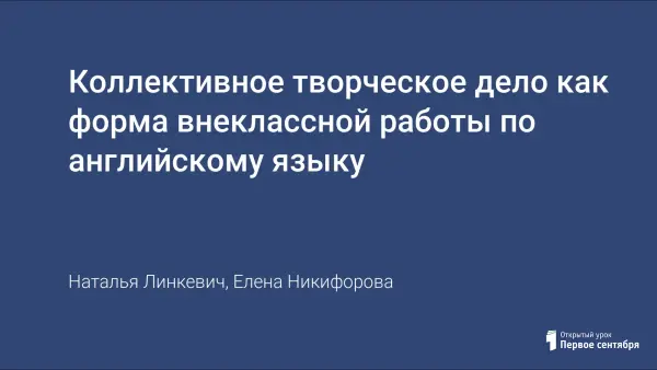 Коллективное творческое дело как форма внеклассной работы по английскому языку