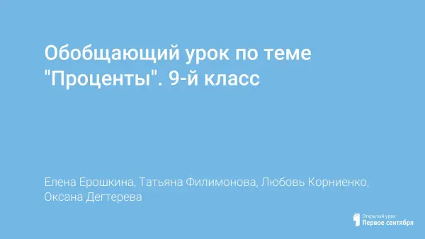 Задачи на проценты изучаются в 5‒6-х классах, но тема раскрывается только частично. Не изучаются задачи на сложные проценты, на смеси и сплавы. Задачи на проценты – это задачи повседневной жизни человека в обществе. Представлен урок обобщения в 9-м классе,одна из задач которого состоит в том, чтобы систематизировать, расширить знания и умения применять различные способы решения задач на проценты.