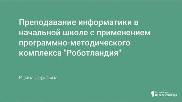 Применение программно-методического комплекса "Роботландия" в преподавании информатики в начальной школе полностью себя оправдало. Он соответствует обязательному минимуму содержания образования, дает возможность создать базу для изучения информатики на более высоком уровне, помогает предотвратить появление синдрома неуверенного общения с техникой, способствует повышению мотивации учащихся к учебному процессу по всем предметам. На основе материалов этого комплекса реализована на практике программа развития внимания, памяти и мышления учащихся.