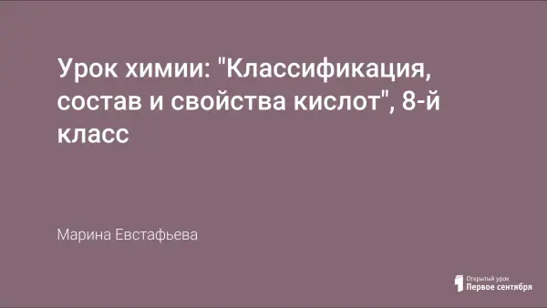Урок знакомит учащихся с кислотами: их классификацией свойствами и составом;