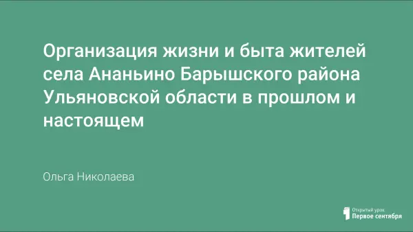 Изучение жизни и быта жителей села Ананьино в прошлом и настоящем для создания одного из разделов школьного музея.