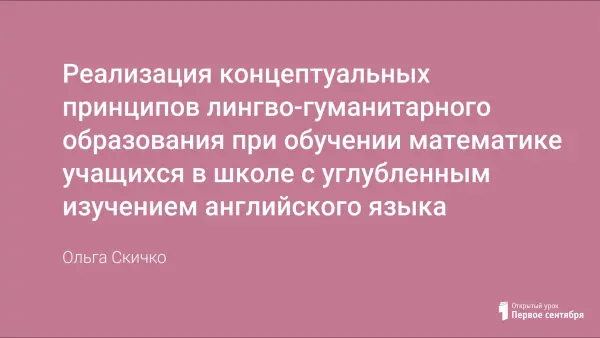 В работе представлен опыт работы учителя по формированию успешной мотивации учащихся в школьной деятельности через уроки математики. Изложен взгляд на реализацию изложенных принципов в условиях лингво-гуманитарной школы.