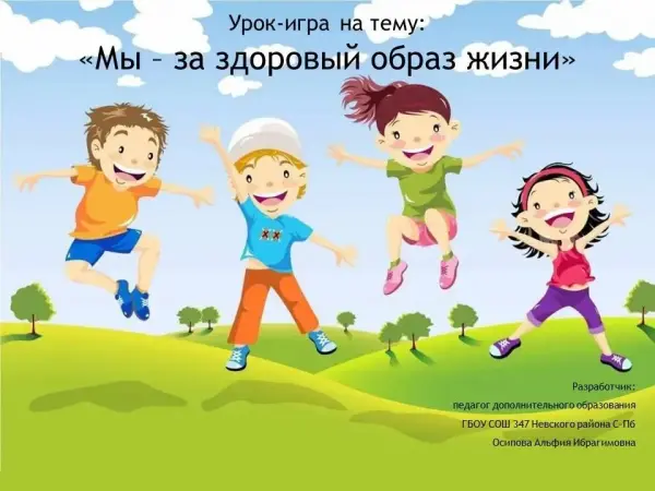 Здоровье – главная ценность в жизни любого человека. В последнее время в практику школ очень широко внедряются здоровьесберегающие технологии, направленные на поддержание здоровья детей и направляющие их на ведение здорового образа жизни. Вести здоровый образ жизни – это значит самосовершенствоваться духовно, психологически, физически и улучшать социально-экономические условия жизни. Одной из основных задач государства в сфере образования признана всесторонняя забота о сохранности жизни и здоровья, о физическом развитии и воспитании детей. Цель: дать представление о том, что такое здоровый образ жизни; пропагандировать здоровый образ жизни.