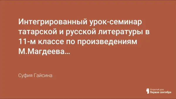 Интегрированный урок - семинар татарской и русской литератур в 11-м классе по произведениям татарского прозаика М.Магдеева "Кеше китэ, жыры кала" ("Человек уходит, песня остается") и В.Распутина "Живи и помни" по теме "Раздумья писателей о трагических судьбах и противоречивых характерах их героев". Цель урока: через сопоставление произведений развивать навыки критического мышления, находить общее и выделять главное, правильно оценивать общественные исторические процессы.