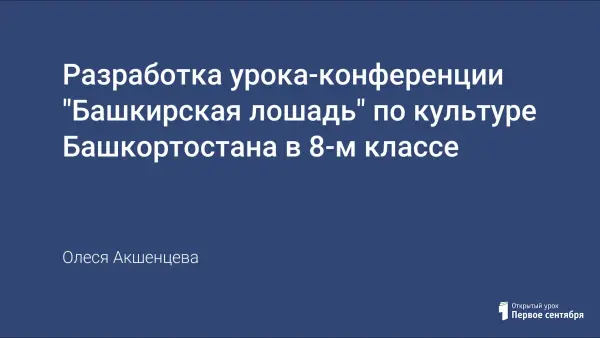 Данный урок по предмету Культура Башкортостана в 8 классе является нестандартным, интегрированным уроком с использованием знаний экономики, географии, экологии, истории, башкирской литературы и культуры. Цель урока – повторить и обобщить знания учащихся о башкирской лошади и всем что связано с ней; развивать память, мышление, воображение, внимание, речь; воспитывать любознательность и интерес к истории и культуре. Урок дает возможность раскрыть все стороны истории развития и современности башкирской лошади, одновременно отображая богатый мир культуры, традиций и обычаев башкирского народа. Разработку данного урока можно использовать и как сценарий внеклассного мероприятия.