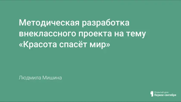Внеклассный проект «Красота спасёт мир» представлен в трёх последовательных этапах: конкурс поделок, конкурс икебан и музыкально-поэтическая композиция. Конкурс поделок и конкурс икебан подразумевают самостоятельную работу, в то время как музыкально-поэтическая композиция является продуктом совместной деятельности учащихся. Данный проект призван воспитать учащихся через призму культуры, искусства и истории, развить эстетическое мировосприятие и умение самим создавать продукты творческой деятельности. Эстетическое воспитания неотъемлемая часть школьной программы, мероприятие сможет открыть мир культуры и искусства с нестандартного ракурса. Мероприятие подразумевает наличие аудитории и подходит для восприятия детей любого возраста.