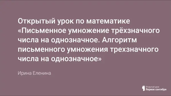 Цель урока: познакомить с алгоритмом письменного умножения трехзначного числа на однозначное с переходом через разряд.