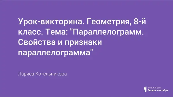 Основные цели проведения викторины - повторить и отработать определение, свойства и признаки параллелограмма; проверить применение теоретических знаний к решению задач; воспитывать интерес учащихся к предмет.