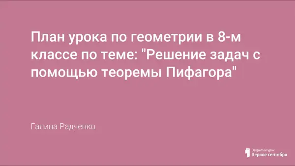 Уроки по теме "Решение задач с помощью теоремы Пифагора" - это третий и четвертый уроки по изучаемой теме. На первом уроке были доказаны теорема Пифагора и теорема ей обратная. На втором введены понятия наклонной и проекции наклонной. На первых двух уроках было проведено первичное закрепление нового материала. Последующие два занятия - это уроки применения знаний и умений при решении задач.