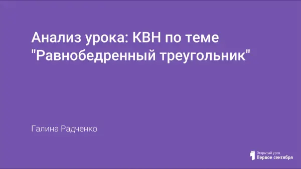 Урок-КВН по теме "Равнобедренный треугольник" - это второй и третий уроки, проводимые по данной теме. Цели урока: научить детей применять теорию к решению задач; развитие познавательной активности, интереса к предмету, умения применять имеющиеся знания в новой ситуации; воспитывать умение работать в команде, чувство ответственности каждого за конечный результат работы всей команды, чувство взаимовыручки, культуру умственного труда.