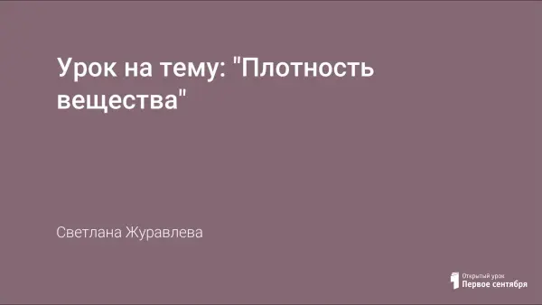 Разработка урока, в ходе которого учащиеся знакомятся с понятием плотность вещества, проводят эксперимент и учатся делать выводы по полученным результатам.