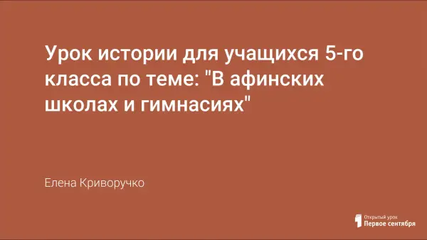 Как воспитать всесторонне развитую личность? - важный вопрос для древних греков. Эта проблема актуальна и в наше время. На своем уроке я совместила воображаемое путешествие с элементами ролевой игры. Это позволило удивить детей, сделать урок познавательным и деятельностным, так как каждый стал активным участником происходящего.