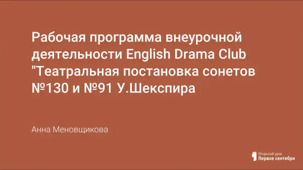Данная рабочая программа дополнительного образования рассчитана на 1 год обучения и составлена на 34 часа в год (1 час в неделю). Программа внеурочной деятельности для обучающихся 9 классов составлена в соответствии с требованиями Федерального государственного образовательного стандарта основного образования. Цель: создание условий для развития у учащихся средней школы умений чтения англоязычной художественной литературы при комплексной интеграции всех видов речевой деятельности, обеспечивая им возможность самореализации и раскрытия своих способностей.