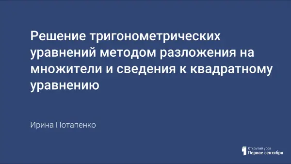 Цель урока: формирование умений решать тригонометрические уравнения сведением к квадратному уравнению и путем разложения на множители.