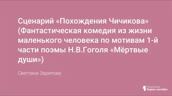Представлен сценарий «Похождения Чичикова» по мотивам 1-й части поэмы Н.В.Гоголя «Мёртвые души».