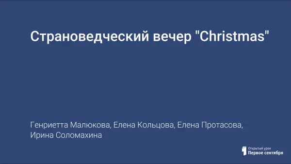 Страноведческий вечер разработан для углубленно изучающих английский язык в ВУЗах, ССУЗах и старших классах средних школ со специализацией на английском языке. Мероприятие имеет целью углубление страноведческой компетенции обучающихся, воспитание интереса к изучению языка и страноведения, а также толерантности обучающихся. В форме рождественской сказки учащиеся знакомятся с традициями празднования Рождества в Великобритании.