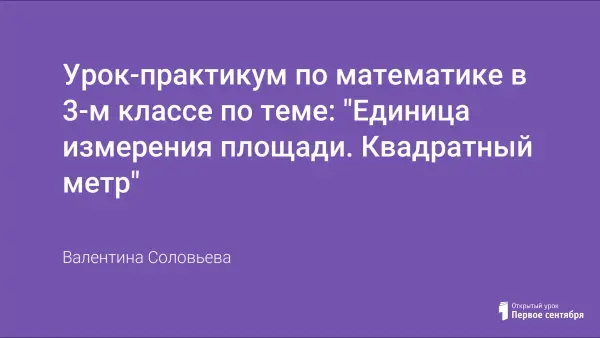 Урок-практикум по математике для 3-го класса по теме "Единица измерения площади. Квадратный метр (м<sup>2</sup>)" нацелен ознакомить детей и дать возможность абстрактно представить квадратный метр, помочь им его определить, закрепить умение учащихся находить площади различных фигур (многоугольник). В ходе урока воспитывается чувство взаимоподдержки и выручки, продолжается работа над формированием вычислительных навыков, идет развитие логического мышления.