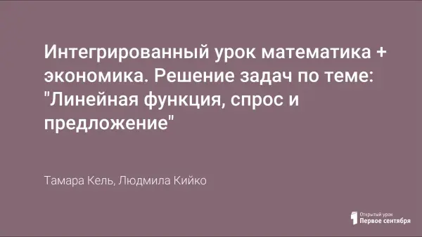 Интегрированный урок математика + экономика. Решение задач по теме: "Линейная функция, спрос и предложение"