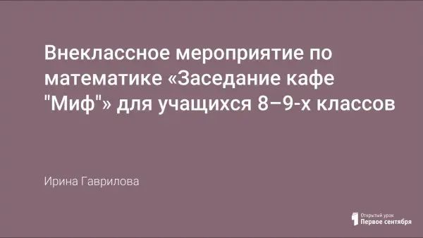 Предлагаемая разработка внеклассного мероприятия по математике направлена на формирование интереса к практическому применению математических знаний, а также способствует развитию логики и творческого мышления. Нестандартная форма мероприятия - кафе - позволяет объединить задания различных по типу и сложности.