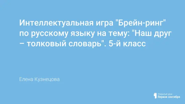 В преподавании русского языка особое значение приобретает развитие интереса к предмету. Игра – мощное средство формирования познавательного интереса. Данная разработка – интеллектуальная игра "Брейн-ринг" по русскому языку в 5-м классе по теме "Наш друг – словарь". Эта игра способствует расширению приобретенных на уроке знаний, помогает учащимся лучше усвоить программный материал, совершенствует навыки анализа различных фактов языка, расширяет лингвистический кругозор ребят, развивает творческие возможности.