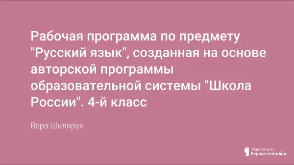 Программа предполагает изучение родного языка в единстве с целенаправленным формированием у детей развернутой структуры учебной деятельности и познавательной самостоятельности. Автор формирует у младших школьников представление о русском языке как целостной системе, открытие детьми родного языка как предмета изучения, воспитание чувства сопричастности к сохранению чистоты, выразительности, уникальности родного слова, пробуждение интереса и стремление к его изучению.