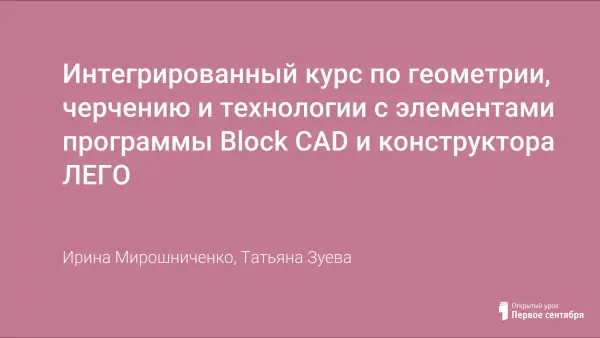 Интегрированный курс по геометрии, черчению и технологии с элементами программы Block CAD и конструктора ЛЕГО
