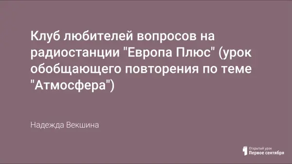 Нетрадиционная форма урока: игра-соревнование команд, где они отвечают на вопросы творческого уровня, заданные слушателям в письмах, присланных на радиостанцию; игра в лото “Атмосфера” (для проверки понятийного аппарата) не оставит равнодушными ваших учеников, а Вам позволит достичь поставленных целей.