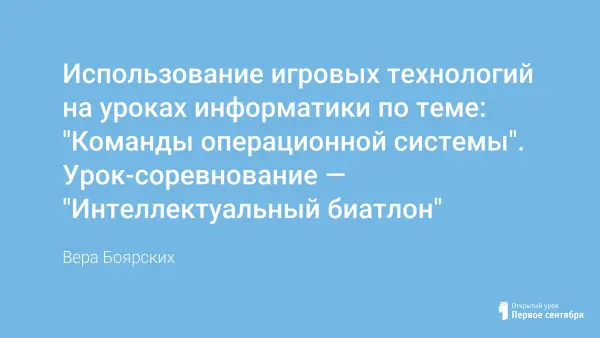 В современной школе игровые технологии используются как один из методов личностно-ориентированного обучения. При всех плюсах игровых технологий есть и минус - очень высокая трудоемкость при подготовке урока. Предлагаемая разработка итогового урока по теме "Программное обеспечение ЭВМ. Операционная система MS-DOS" может помочь провести урок в форме соревнования. Смена форм и видов деятельности, разнообразие дидактического материала, оптимальный контроль каждого задания позволят закрепить и систематизировать знания всех категорий учащихся при работе с информацией на ЭВМ.