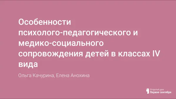 Особенности психолого-педагогического и медико-социального сопровождения детей в классах IV вида