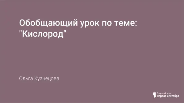 Обобщающий урок в 8-м классе по теме "Кислород. Оксиды. Горение" проводится в виде путешествия в страну Великого Кислорода.