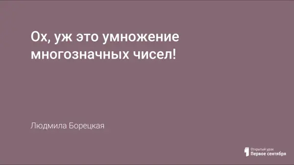 На уроке математики повторяется алгоритм умножения многозначного числа на однозначное число, правила умножения с числами 0 и 1. На протяжении всего урока концентрируется внимание учащихся на правильном пользовании сформулированными правилами при решении примеров. При нахождении правильного результата закрепляется алгоритм умножения многозначного числа на однозначное число. В совместной деятельности учащихся, при работе в парах, вырабатывается самоконтроль. Решая задачу разными способами, при этом сравнивая и анализируя ее решение, развивается логическое мышление.