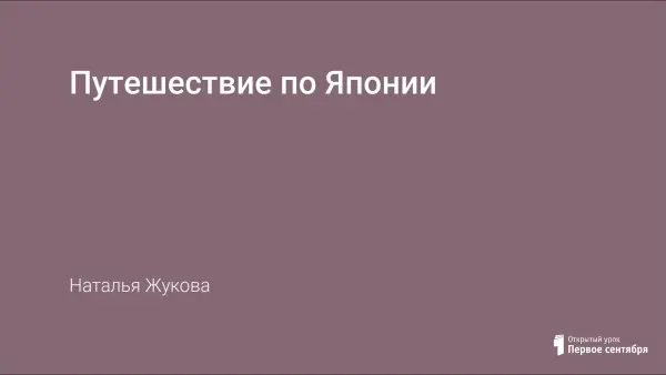Классный час, направленный на привитие интереса к географии; расширение кругозора учащихся, развитие умения работать в группах, умения работать с дополнительной литературой; привитие уважения и интереса к традициям и обычаям других народов; формирование эстетического восприятия окружающего мира через знакомство с поэзией Японии, искусством икебаны.