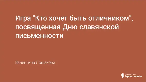 Игра "Кто хочет быть отличником", посвященная Дню славянской письменности