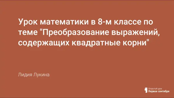 Благодаря данному уроку учащиеся повторяют определения квадратного арифметического корня, его свойства; продолжают отрабатывать умения и навыки, проводить тождественные преобразования выражений, содержащих квадратные корни. Также развивается интерес к изучению алгебры, навыки самостоятельной работы.