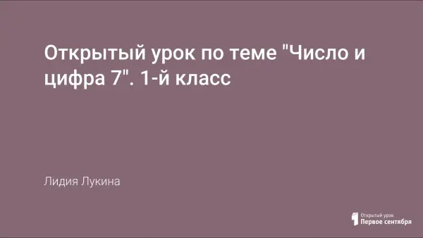 Автор знакомит учащихся с числом и цифрой 7, получением состава числа 7. Развивает речь, внимание, память, мышление. Учащиеся совершенствуют вычислительные навыки. Формируют самооценку, учатся работать в паре.