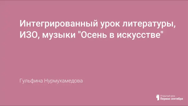 Класс разделён по группам (лирики, художники, музыканты). Задания - разноуровневые. По ходу урока заполняется таблица о мастерах искусства. Лирики читают, сочиняют, анализируют; художники готовят сообщения, рисуют, описывают картины, демонстрируют свои работы, музыканты рассказывают о композиторах, произведениях, поют. Оценки выставляют, комментируя, руководители групп. На дом: сочинение - миниатюра "Осень на моей улице".