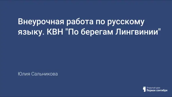 КВН проводится в рамках внеурочных занятий. Цель: активизировать познавательную деятельность учащихся, расширить представление о богатстве русской речи, обогатить словарный запас детей, закрепить орфографические навыки; формировать коммуникативные умения, развивать логическое мышление, память воображение, творческие способности учащихся; воспитывать интерес и любовь к родному языку, чувство восхищения его выразительными возможностями.