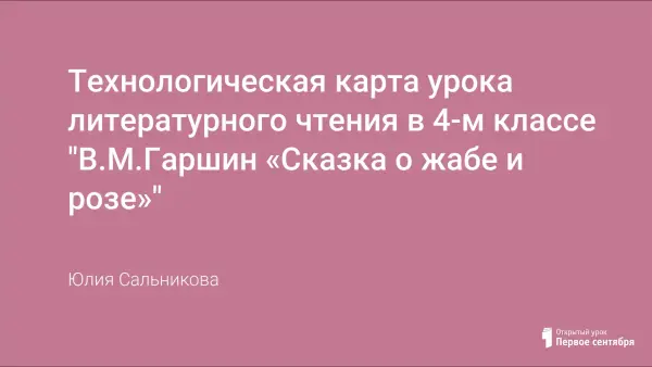 Технологическая карта урока изучения нового материала по теме: «В.М.Гаршин «Сказка о жабе и розе» по учебнику Л.Ф.Климановой «Литературное чтение. 4-й класс» - УМК «Школа России». Задачи урока: дать общее представление о жизни и творчестве В.М.Гаршина; познакомить со сказкой «Жаба и роза», ее основной мыслью; проанализировать сказку, составить план.