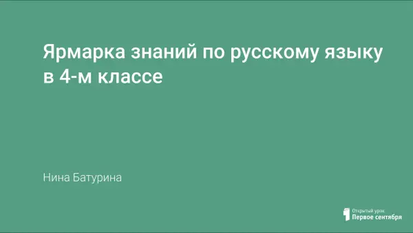 Урок "Ярмарка знаний по русскому языку" проводится в 4-м классе в конце учебного года. Весь урок представлен как "покупка знаний" на ярмарке. Доска оформлена в виде "лавки", где дети "покупают" товары (шоколадки, матрёшки, игрушки, бублики), "расплачиваясь" знаниями. Таким образом, происходит первичное знакомство детей и учителей, к которым они придут в следующем учебном году.
