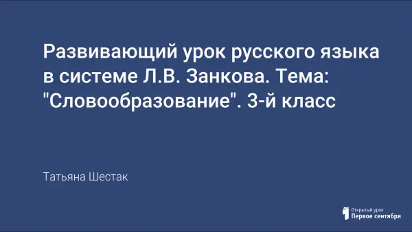 Развивающий урок русского языка в системе Л.В. Занкова. Тема: "Словообразование". 3-й класс