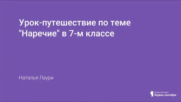 Данный урок входит в систему уроков, посвященных изучению темы "Наречие". Проводится он как итоговый урок по теме. Форма путешествия выбрана неслучайно: в этом возрасте учащиеся еще восприимчивы ко всякого родам сказкам, фантазиям, к игре. Задания к уроку учащиеся получили за две недели до его проведения.