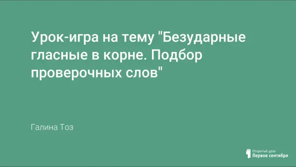 Урок-игра на тему "Безударные гласные в корне. Подбор проверочных слов"