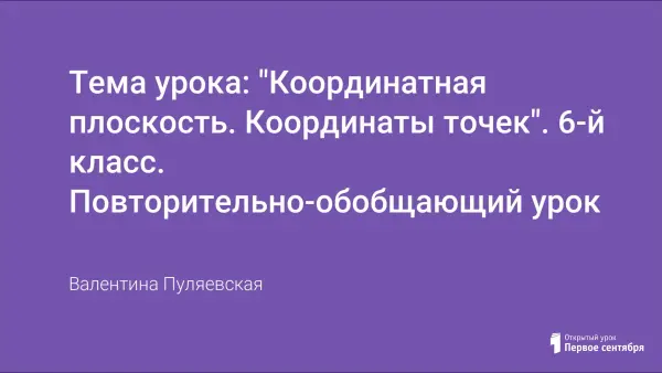 Основные цели урока - систематизировать и обобщить знания учащихся по данной теме; развивать познавательный интерес к изучаемому предмету, развивать логическое мышление у учащихся; воспитательная, воспитывать внимательность учащихся, аккуратность в построении координатной плоскости.