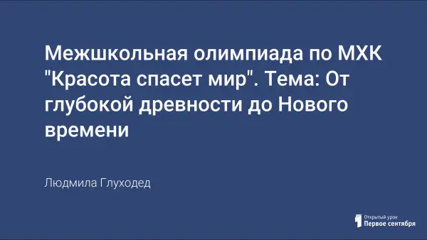 Мир наших предков таинственнен и необычаем. Цель моей работы на проверка знаний, а познание этого таинственного мира древности через исследование, чтение, поиск. Пусть каждый ученик откроет для себя много нового и неизвестного, проявит свою эрудицию и интеллект. Задания разнообразны по форме и содержанию, что, несомненно, вызовет интерес для тех, для кого знания в области искусства имеют важное значение.
