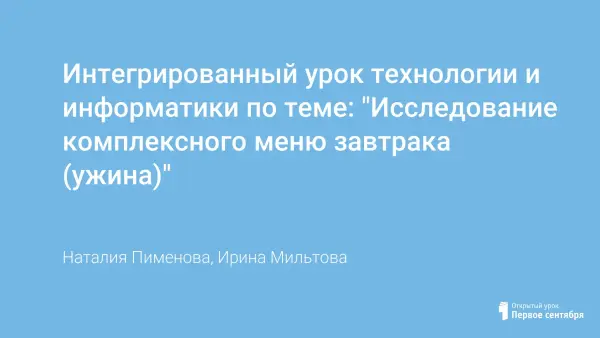 Интегрированный урок технологии и информатики по теме: "Исследование комплексного меню завтрака (ужина)"