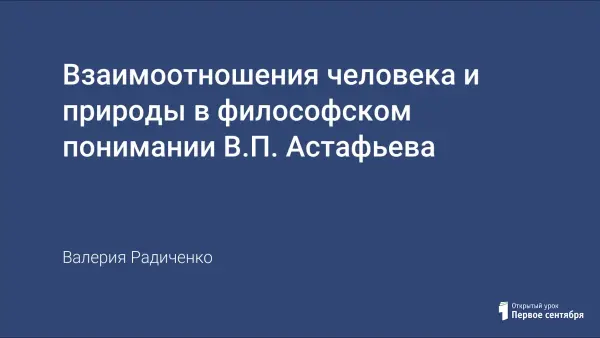 Разрыв тесной связи человека с природой, в результате которого происходит нравственное оскудение людей и увеличение природных катаклизмов, - одна из основных тем в творчестве В. П. Астафьева. Еще раз взглянув на эту проблему не только с точки зрения человека, но и с точки зрения природы, обобщив философские взгляды автора, определим место человека в этом мире.