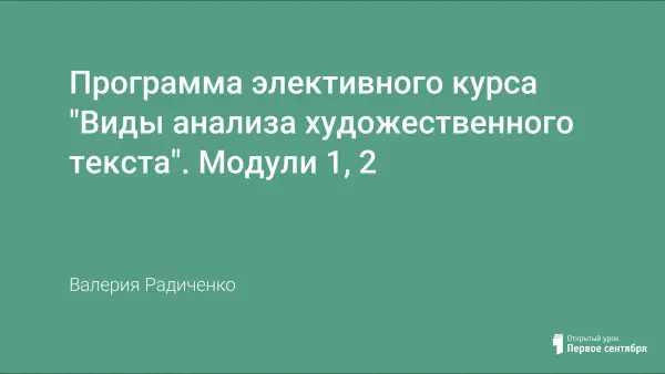классе и состоит из 2-х модулей: "Комплексный анализ художественного текста"