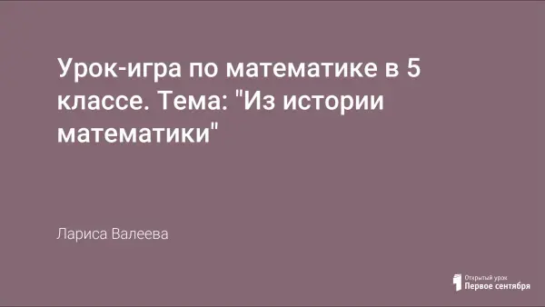 Урок-игра по математике для учеников 5-ого класса по теме: "Из истории математики" развивает математическое мышление, внимание, находчивость, сообразительность. Узнавая факты из истории математики, дети расширяют свой кругозор и их мотивация к изучению предмета повышается.